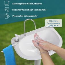 Mobiles Camping Waschbecken mit Fußpumpe und Seifenspender