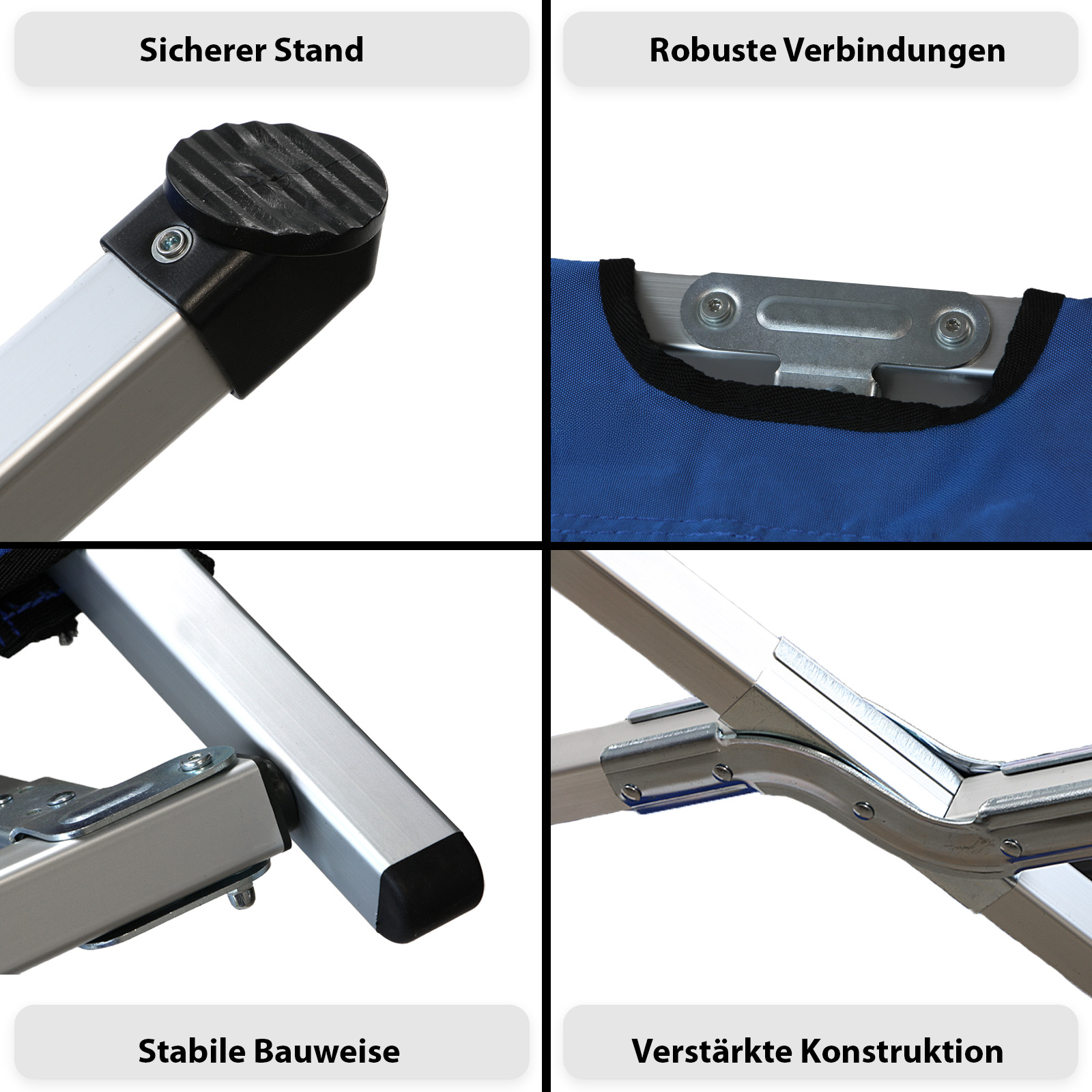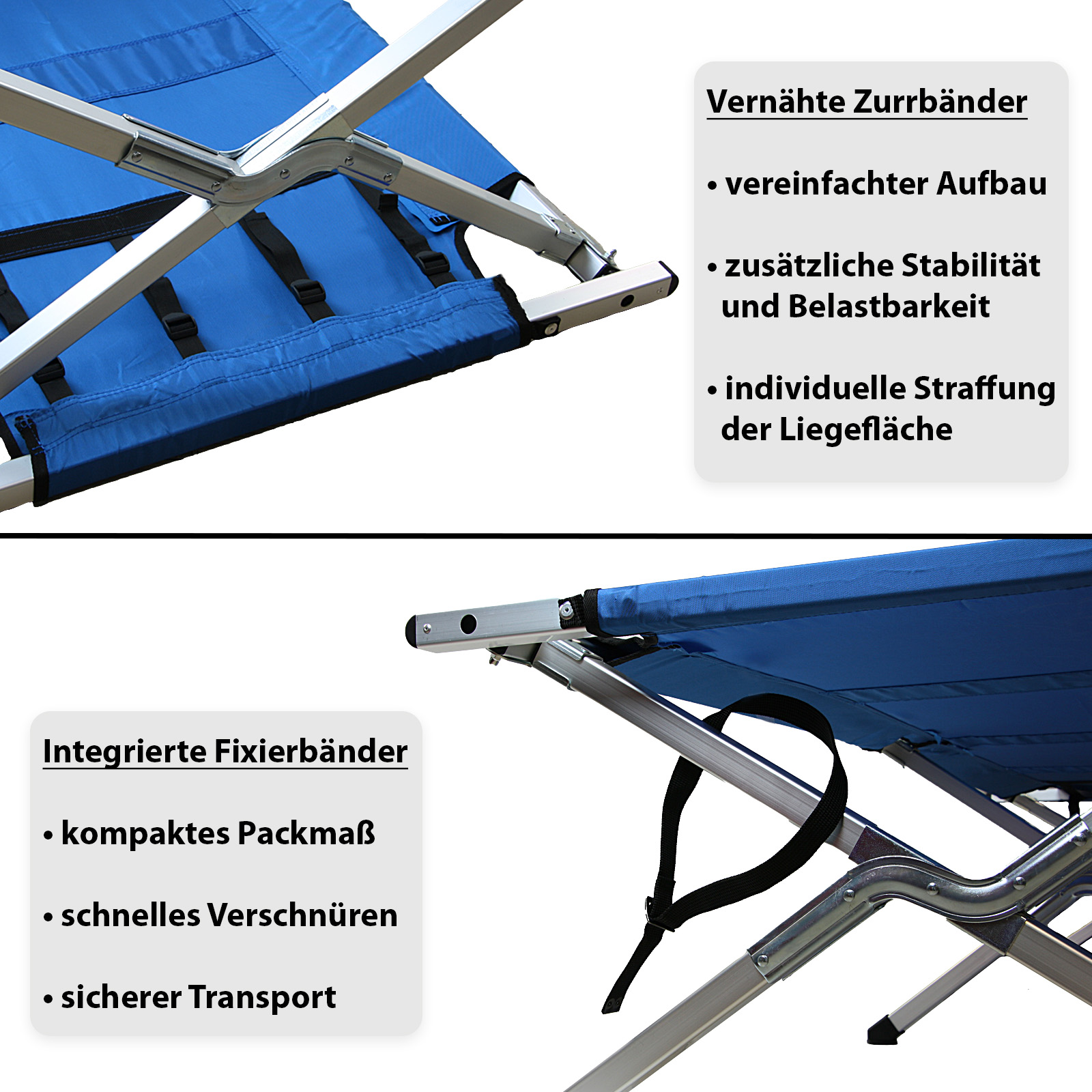 - Vier Zugbänder für eine straffe Bespannung der Liegefläche