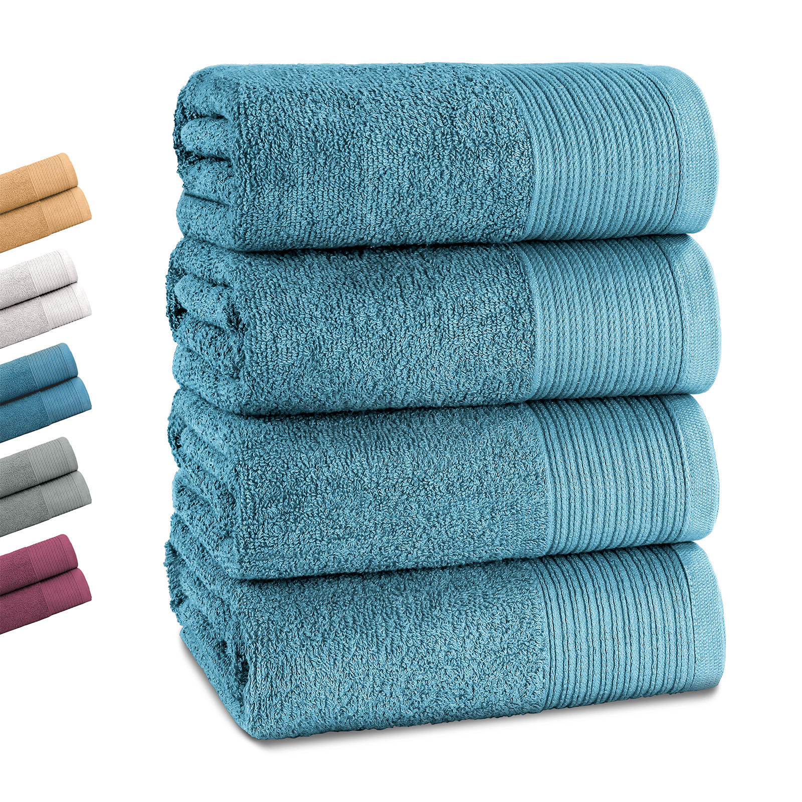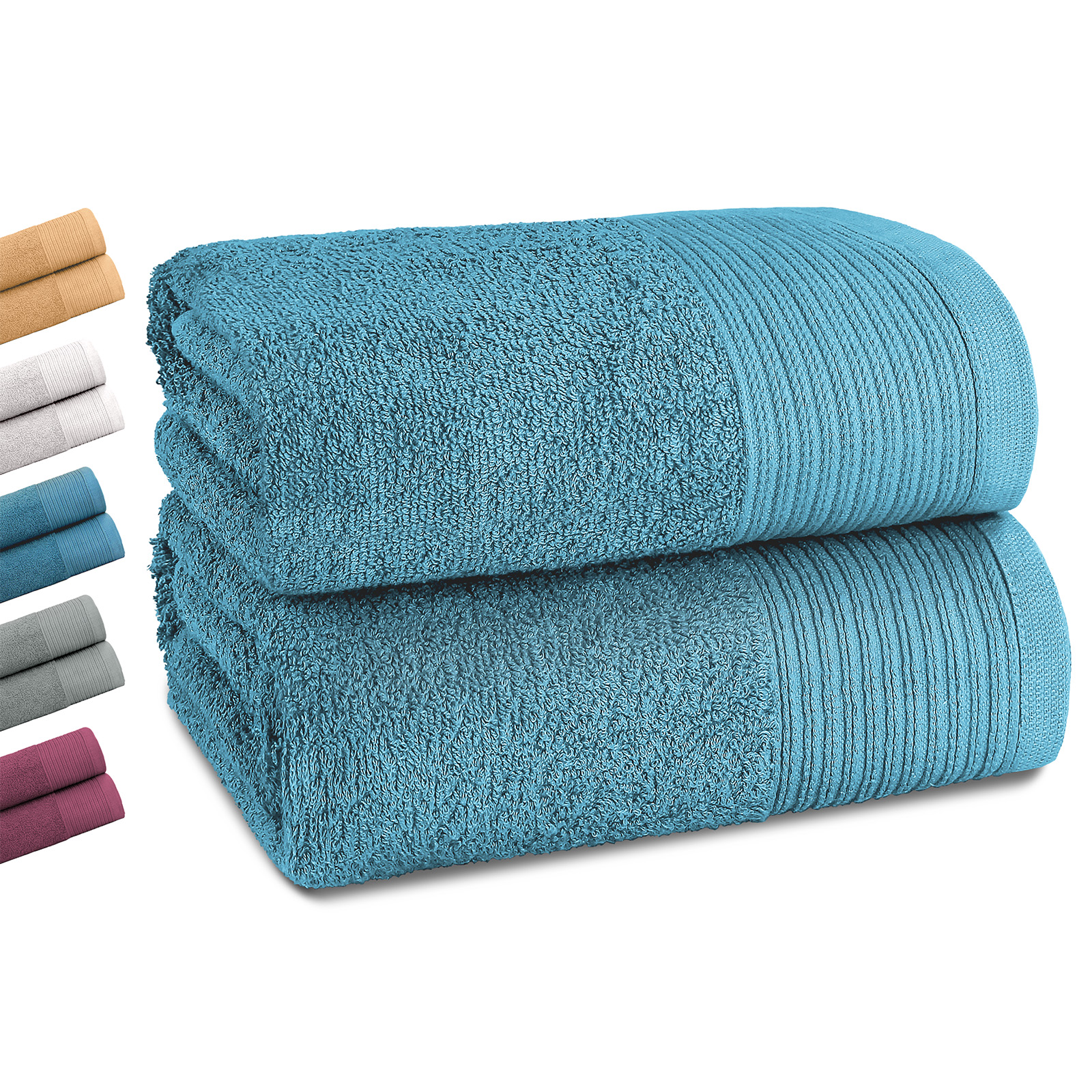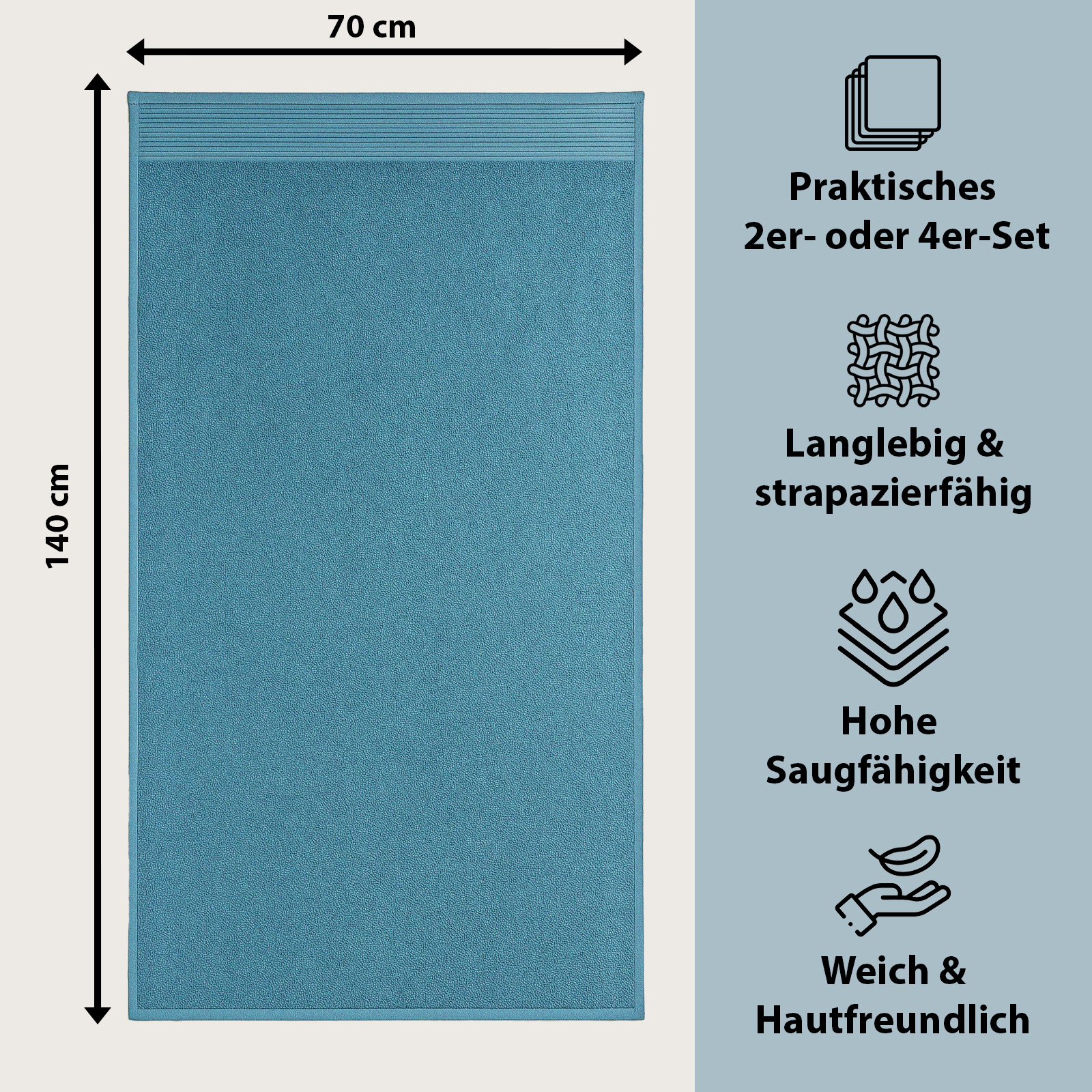 Die stilvollen Farben – klassisches Weiß, modernes Grau, frisches Petrol und edles Pflaume – passen in jedes Bad und verleihen Ihrem Badezimmer einen Hauch von zeitloser Eleganz und frischen Akzenten. Als praktischer Allrounder ist es ein unverzichtbares Tuch für Alltag, Sauna oder Strand.