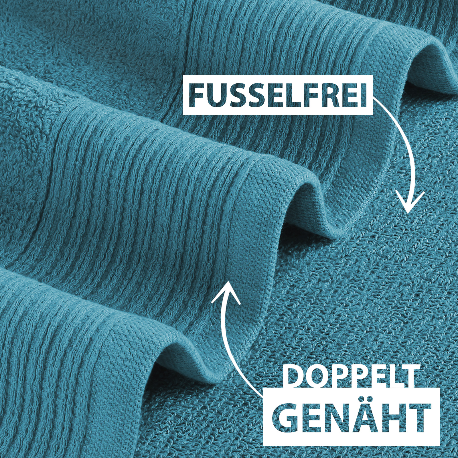 Der doppelt gesäumte Saum unterstreicht die hochwertige Verarbeitung und macht das Duschtuch besonders langlebig. Dank der STANDARD 100 by OEKO-TEX® (Zertifikat Nr. 25.HBD.21813, Institut Hohenstein) Zertifizierung ist das Material frei von Schadstoffen und besonders hautfreundlich – ideal auch für empfindliche Haut.